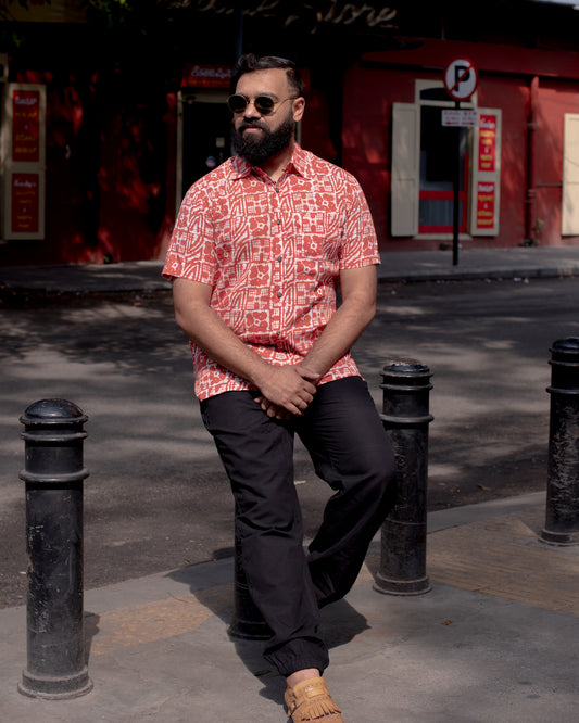 BATIK ORANGE GEOMETRIC SHIRT